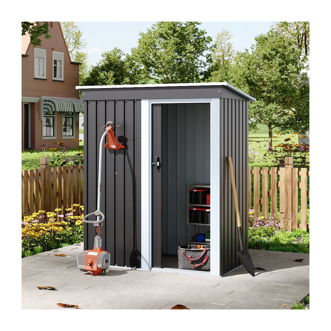 Living and Home Outdoor 3x5 FT Metal Storage Shed with Lockable Door - Charcoal Black