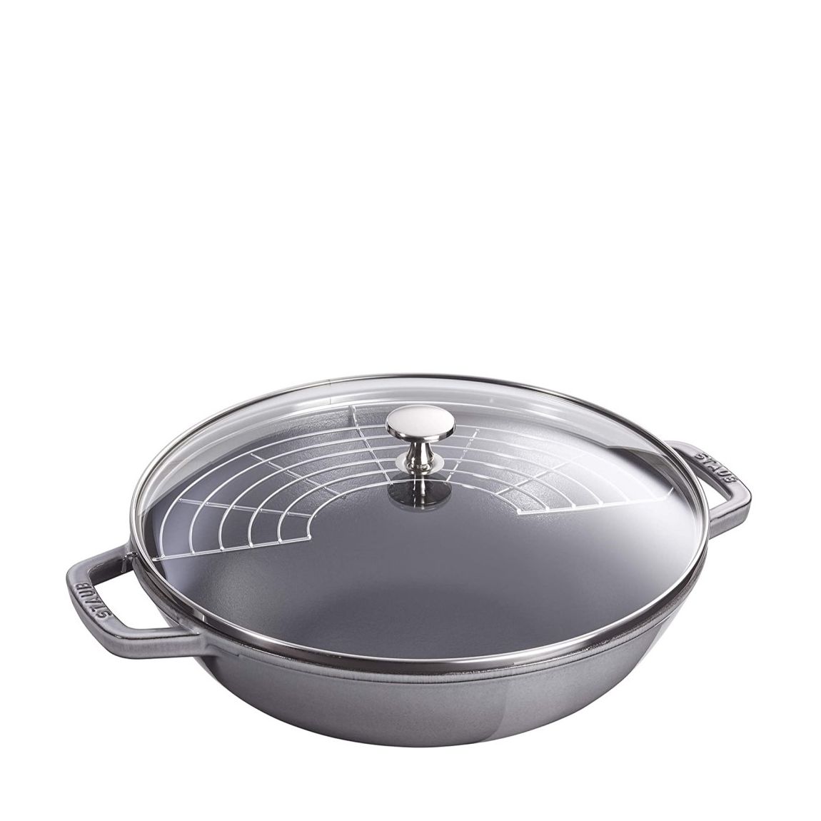 Staub Graphite Grey Round Cast Wok with Glass Lid, 37cm
