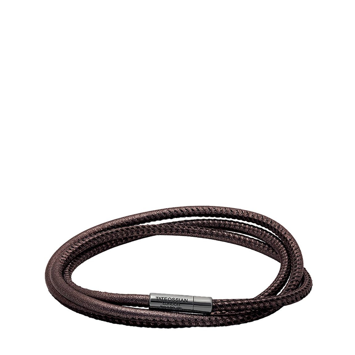 Tateossian Triplo Mini Pop Bracelet in Metallic Brown Leather