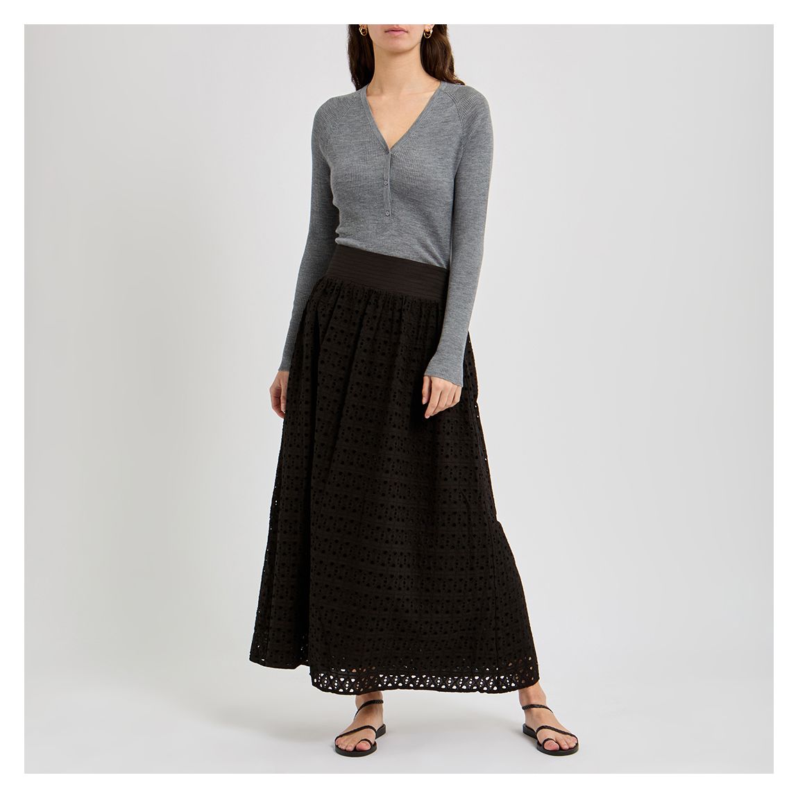 Grey Merino Rib V-Neck Henley Top