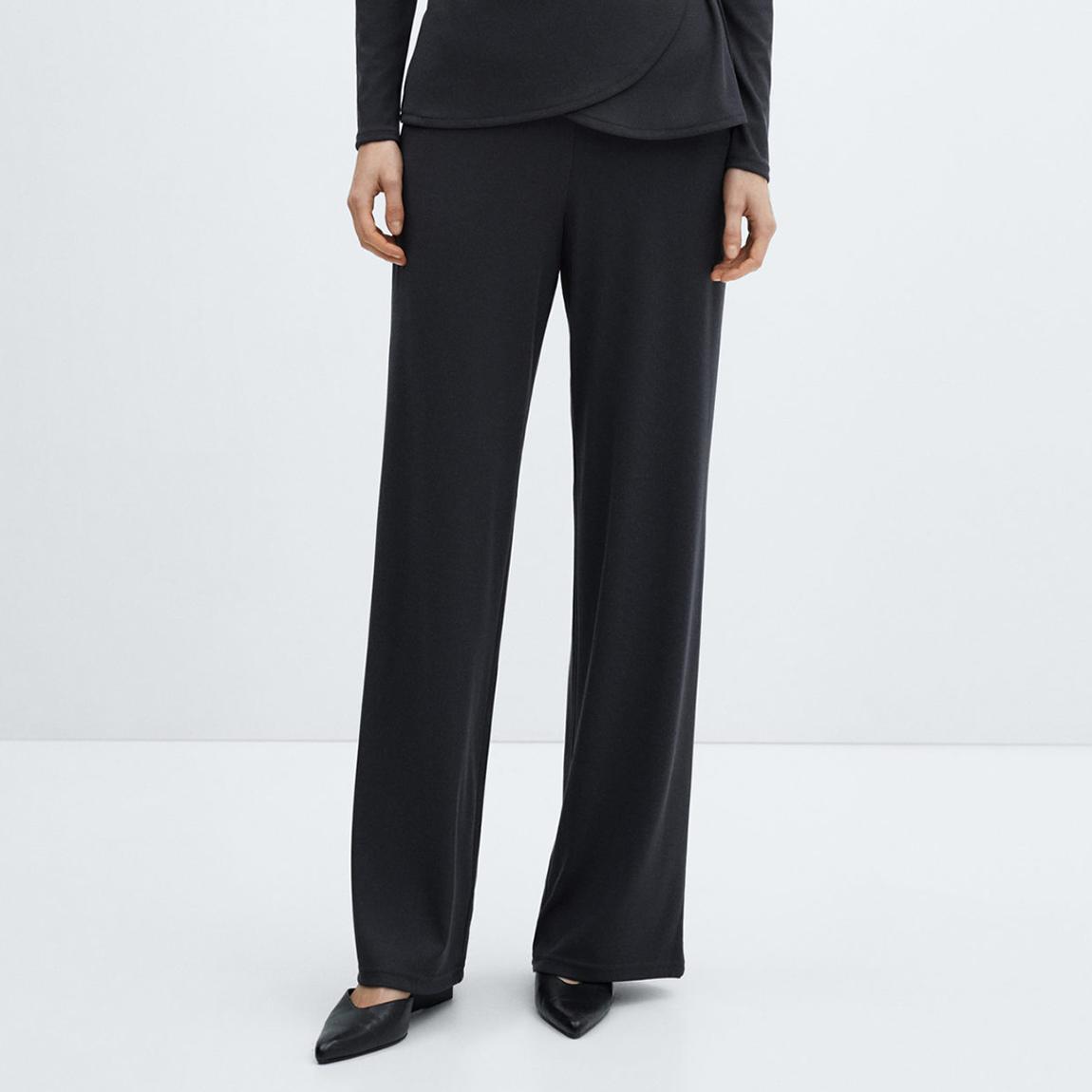 Mango Charcoal Wideleg Trousers With Elastic Waist