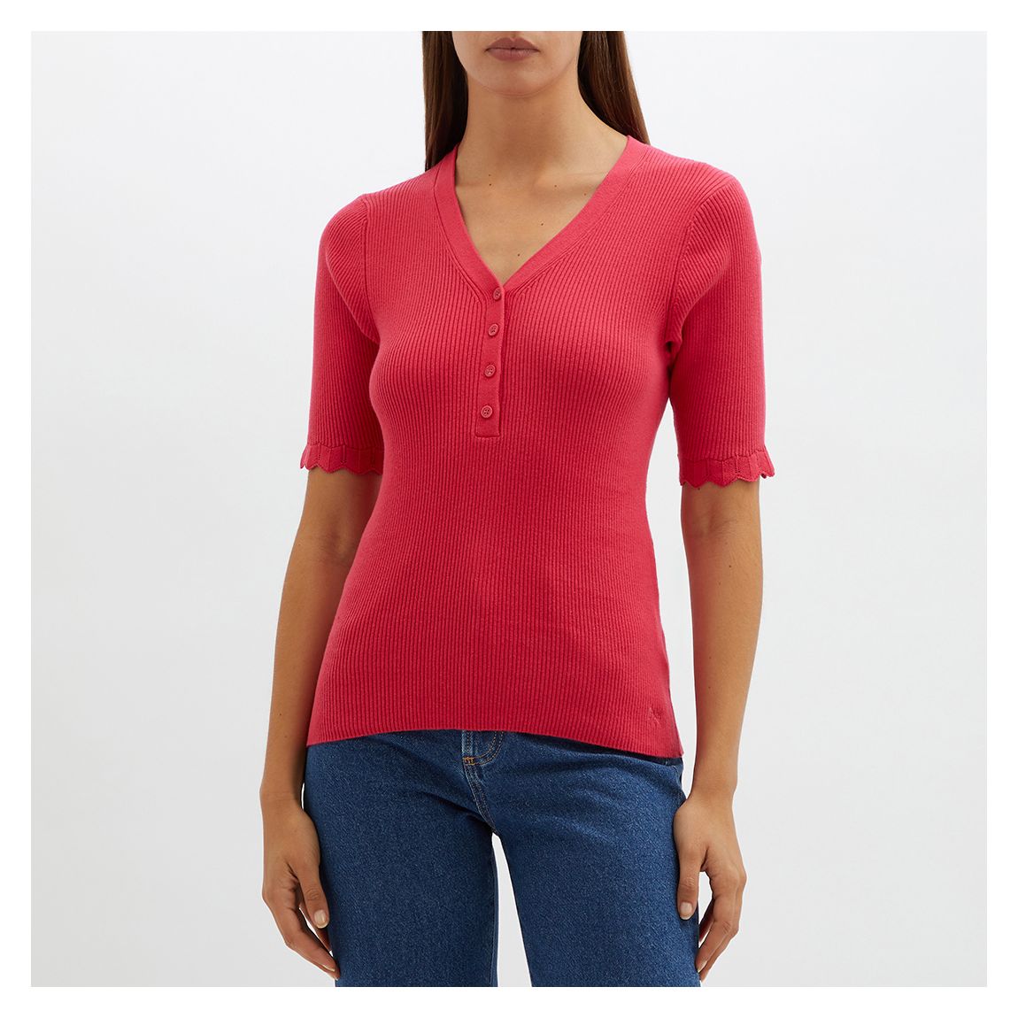 Crew Clothing Pink Short Sleeve Knit Top
